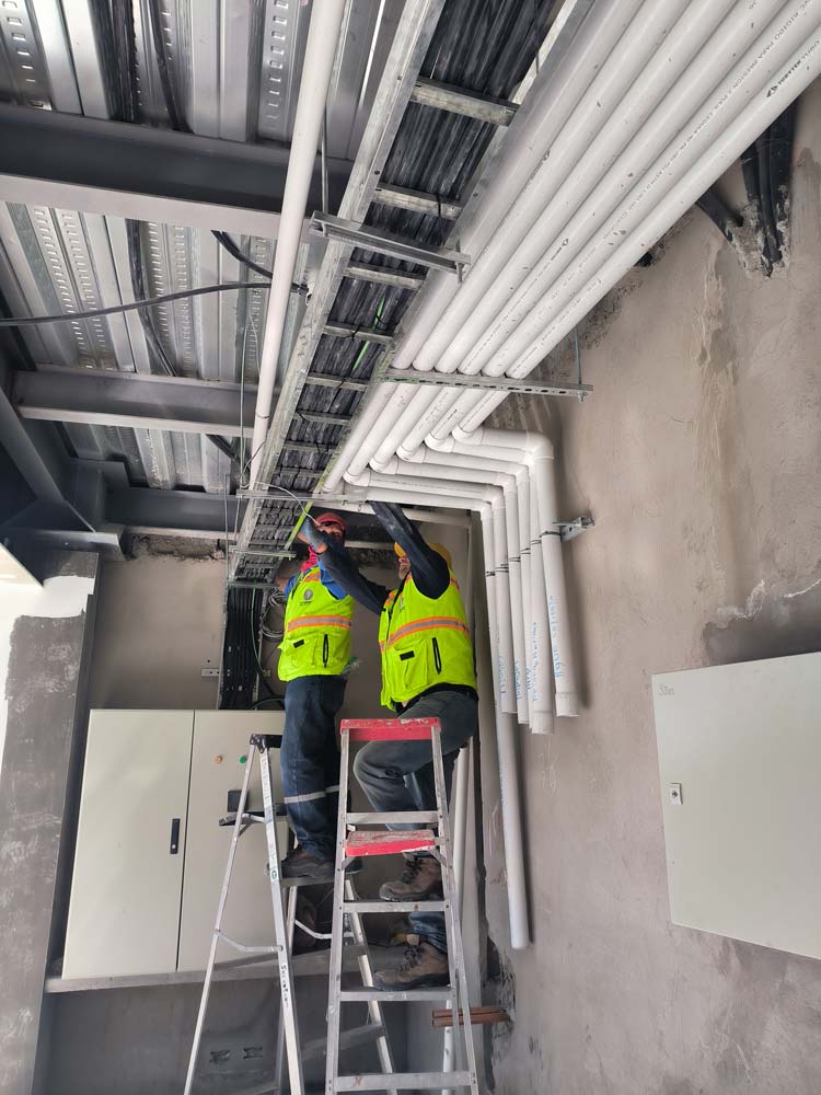 Planificación e implementación de redes eléctricas, alimentadores, tableros y tomacorrientes para áreas residenciales y comunes, incluyendo suministros especiales para ascensores, sistemas contra incendios, bombeo y piscinas.